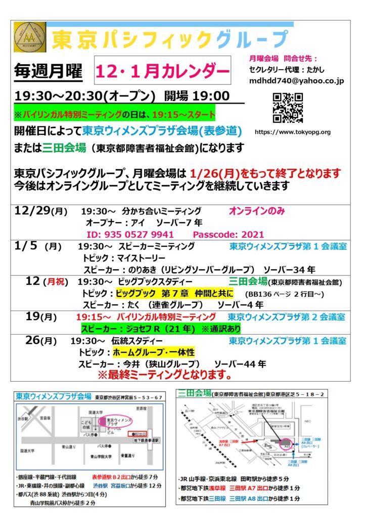 ※2026年2月以降は、会場ミーティングは開催せず、ZOOMミーティングのみの開催となります(ZOOM接続情報と開催時間は、2026年2月以降も同じです。)
