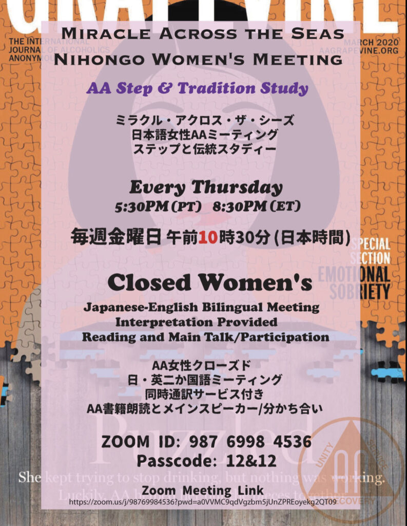 日本と海外の女性アルコホリックが運営する,女性クローズドミーティングです