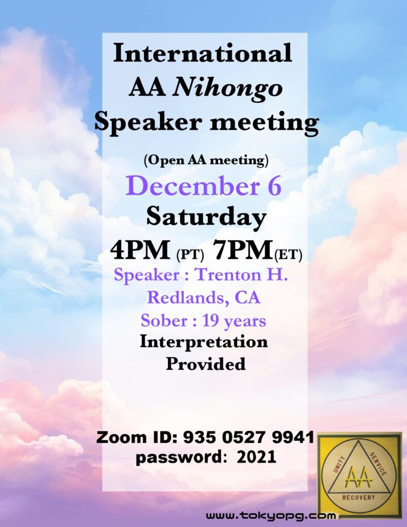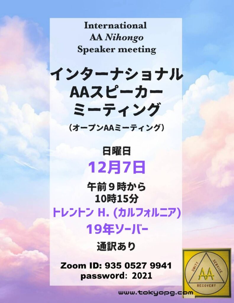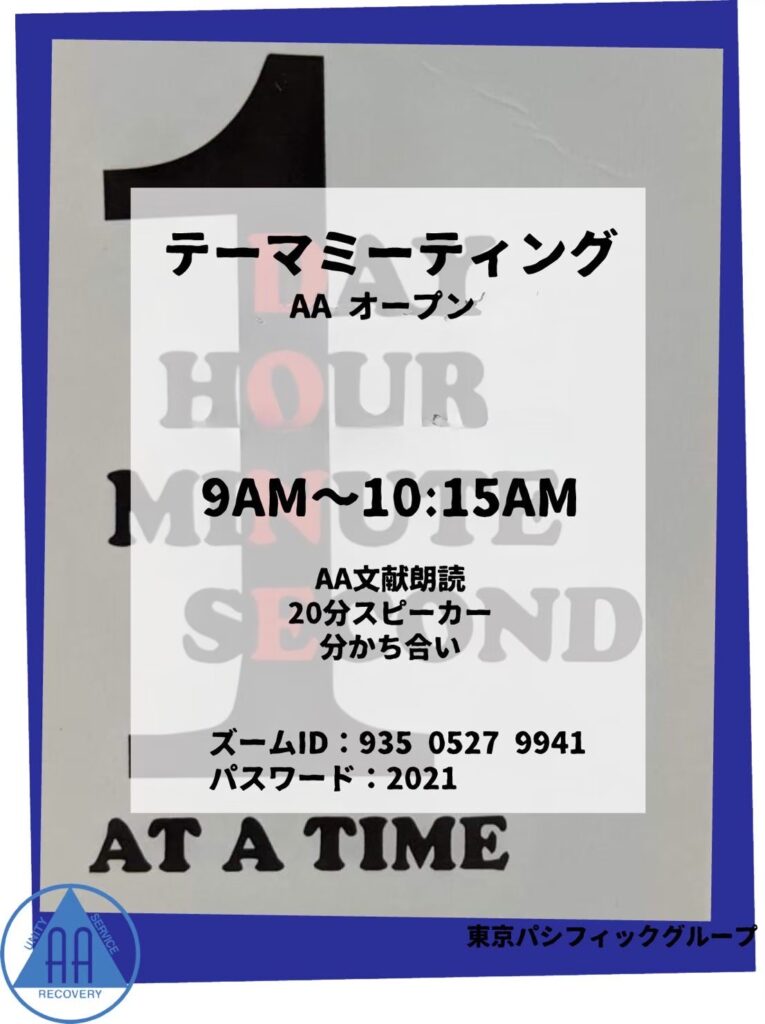 東京PGでは,毎週日曜日の日本時間朝9時から,AAオンラインバイリンガルミーティングを開催しています