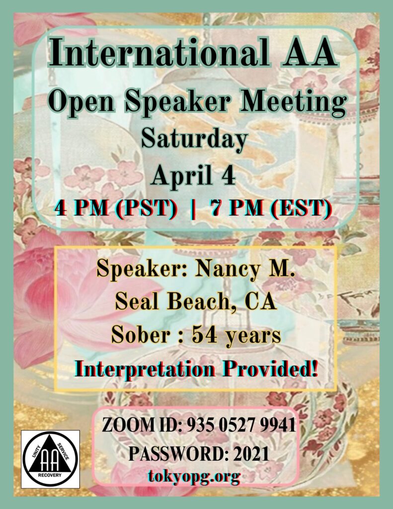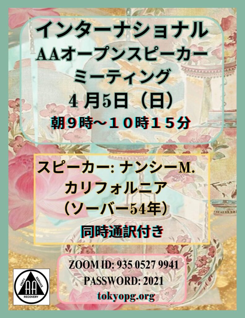 東京PGでは,毎週日曜日の日本時間朝9時から,AAオンラインバイリンガルミーティングを開催しています